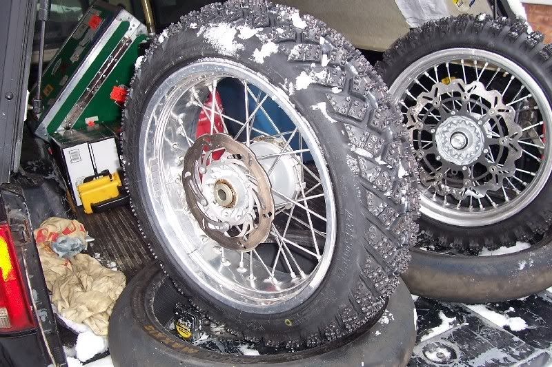 It seems that those tires would be bitchin on clean ice, but maybe not as good as the kenda/dunlop combo in the ruts and snow...