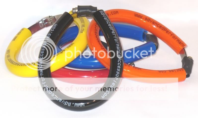 Muffler Sliders come in 5 sizes and in 5 colors........ Red, Blue, Yellow, Orange & Black.