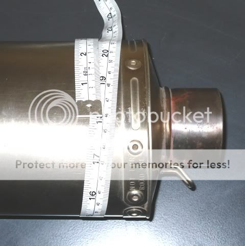 To measure your Muffler Slider location - use a sewing type cloth tape measure or a piece of string and measure around your muffler at your desired location.  Also note the inside clearance as full requires 3/4 inch clearance.