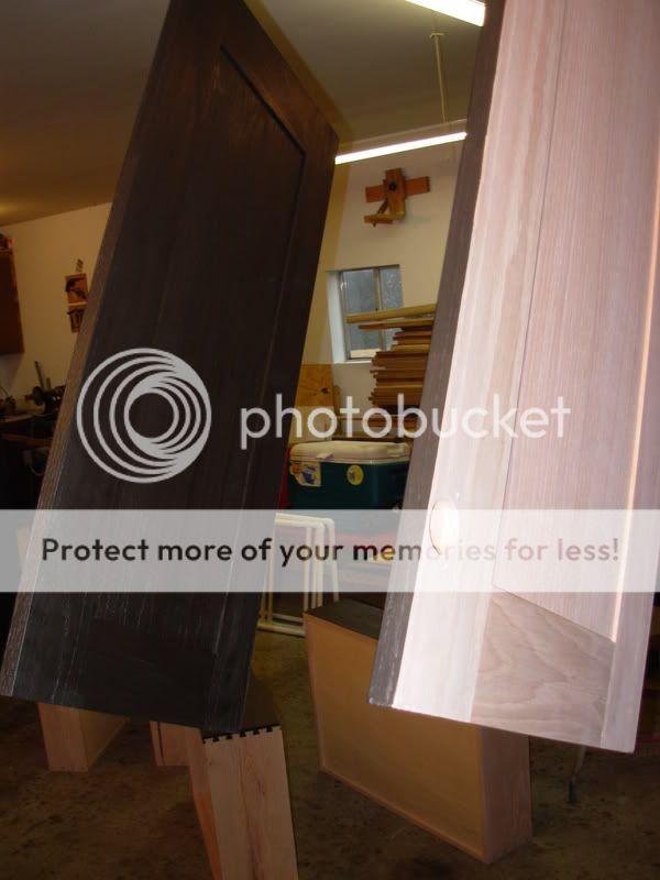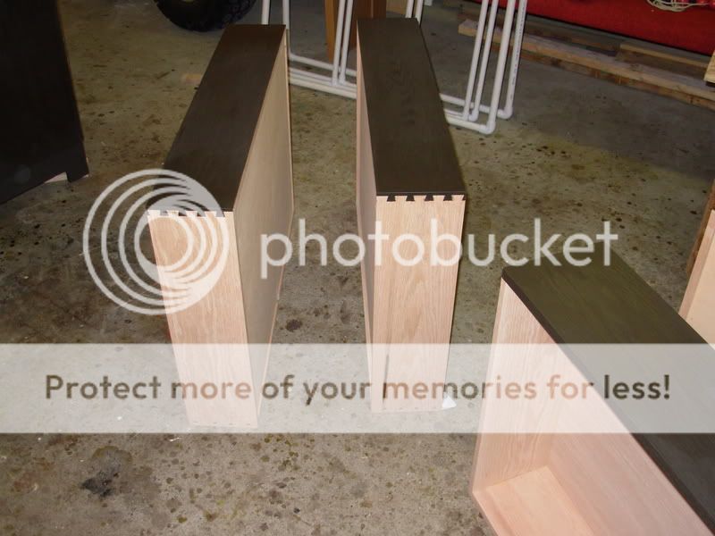 Guy has some skills.  Look like a nice job.  Did you use a Dado joint on the sides of the cabinets or biscuits to hold the drawer shelves?  Kinda hard to tell from the photo.  And did you use a Oak veneered MDF for your cabinet body?  We are building alot of very similar stuff on our project right now.  Looks great. :thumb: