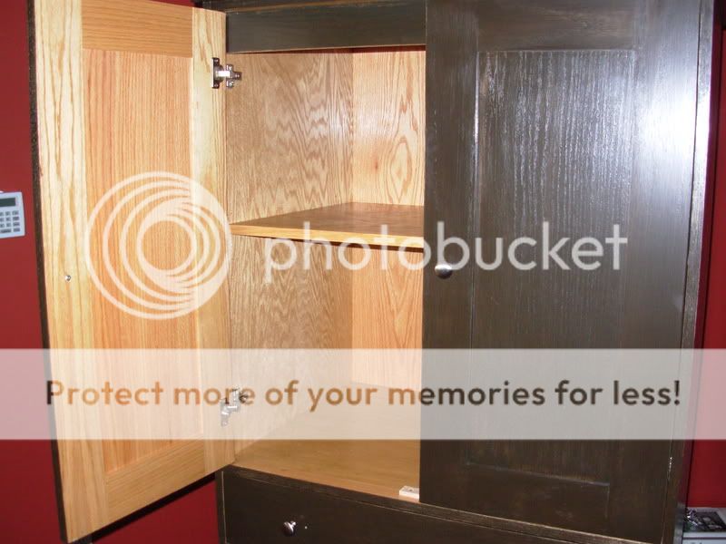 the doors are Dadoed and it is oak veneer with a 2" solid oak face plate thats got biscuts in it and pocket screwed to the sides(Its too expensive to make it all out of lumber :)  .)  The drawer shelves we actually used a router to make the grove with a jig we made to keep everything straight in the side and dadoed the shelves on both sides to make the tounge to fit.